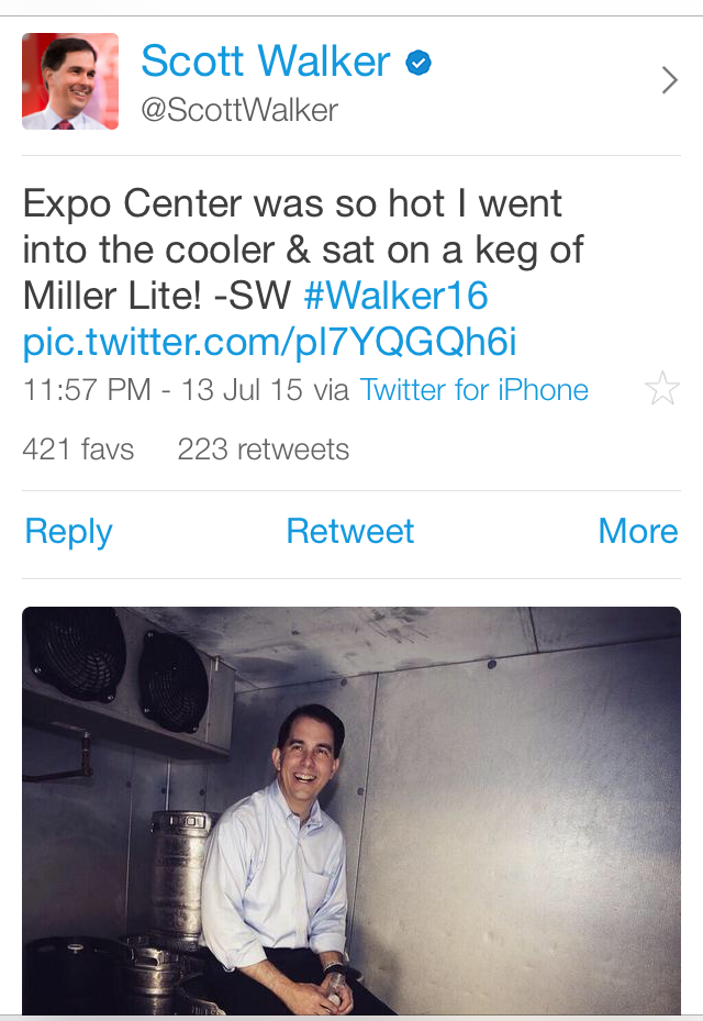 Later, Walker made folks uncomfortable about ordering Miller Lite.