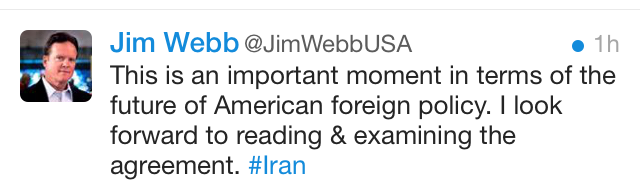 Jim Webb confounded everyone by refusing to issue an opinion on the Iran nuclear deal UNTIL HE HAD READ IT.