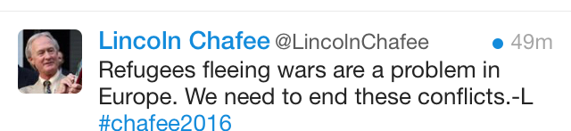 Democratic contender Lincoln Chafee rarely tweets, and frankly, he seems to be running in another race in another time. We last featured his thoughts on how Vietnam might have ended differently. This week: