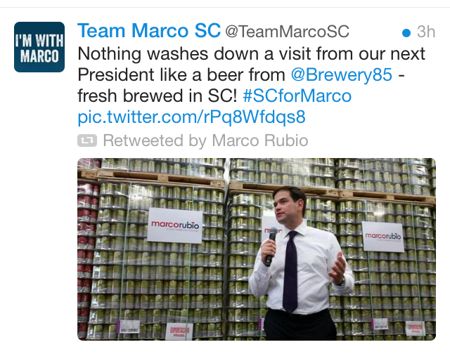 Apparently, it takes a wall of beer to “wash down” a visit from Marco Rubio.