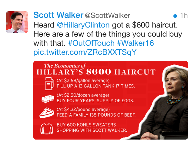 This week on Twitter, Scott Walker has pumped gas, bought a Blizzard at Dairy Queen and worn a cheap tie.