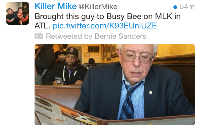 Bernie Sanders tweeted out this photo of himself getting soul food with rapper Killer Mike.