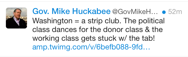 The math on this is super confusing. Is the working class even in the club? Maybe it’s just code to let the faithful know that Mike Huckabee has no idea how a strip club works, NO SIR.