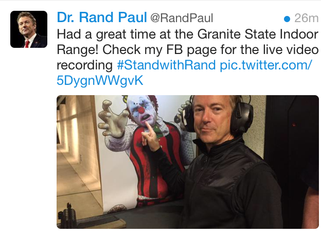 And one of the responses to gun tragedies is that candidates take a break from sending out “Whee! Guns!” tweets like this one from last week. It’s a nice photo of a clown, though.