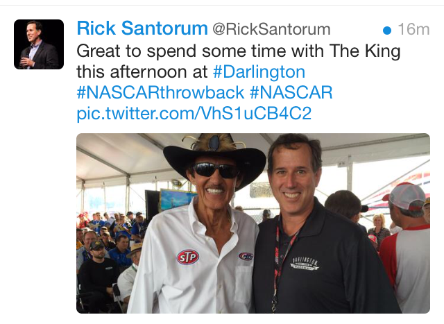 Rick Santorum met with one of America’s many unofficial royal persons, King Richard Petty.