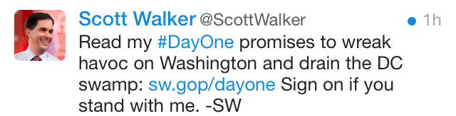 “Wreak havoc” suggests that Scott Walker‘s eventual running mate might be Godzilla. Who, it should be noted, might enjoy a good swamp, so don’t rush to drain that.