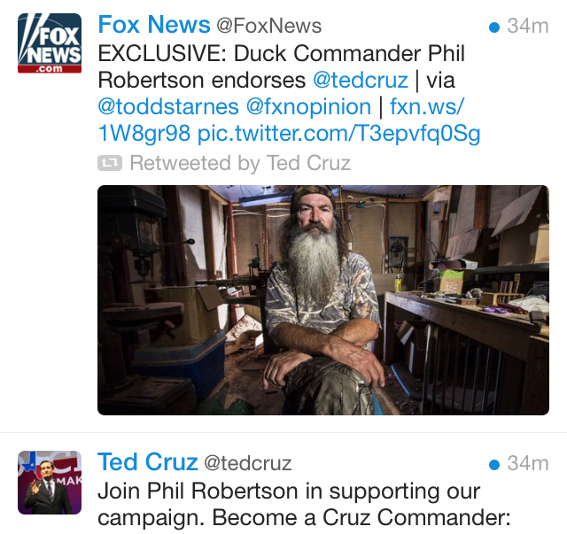 And speaking of other worthless endorsements, “Duck Commander” Phil Robertson gave the nod to Ted Cruz. Presumably, free-thinking ducks will make their own picks.