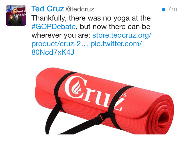 New at the Ted Cruz store: Be this yogi.