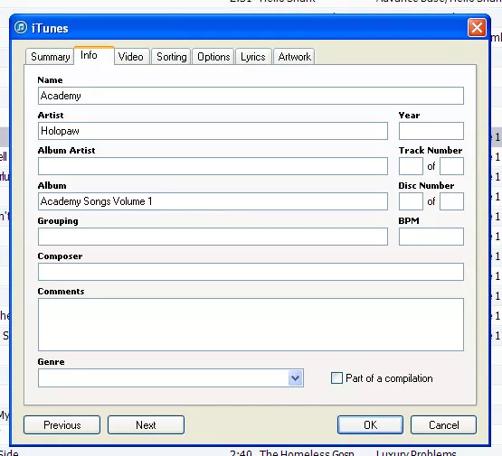 That’s because whoever prepared the MP3s for delivery didn’t add meta information to tell our computers what order the songs should be in. When I imported the songs into iTunes, they remained in alphabetical order: