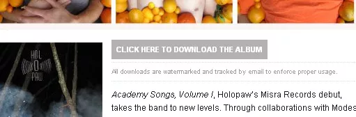 The Holopaw album was sent via digital delivery from ForceField PR, who reps Holopaw. I got it too. And when I downloaded it — by clicking “click here to download the album,” which I presume is the correct way to download an album?