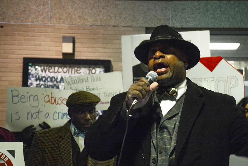 Other speakers at the rally highlighted the “intersectional issue” of special-needs students and black students in public schools getting pushed out of school — and sometimes into prison — if they get into trouble. Some also asked for the firing of Murray from Woodland Hills High School.