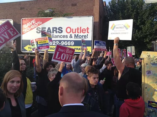 Holmes was met with questions from Joe King, a 41-year-old Regent Square resident who asked why the police weren’t treating the incident as a hate crime.