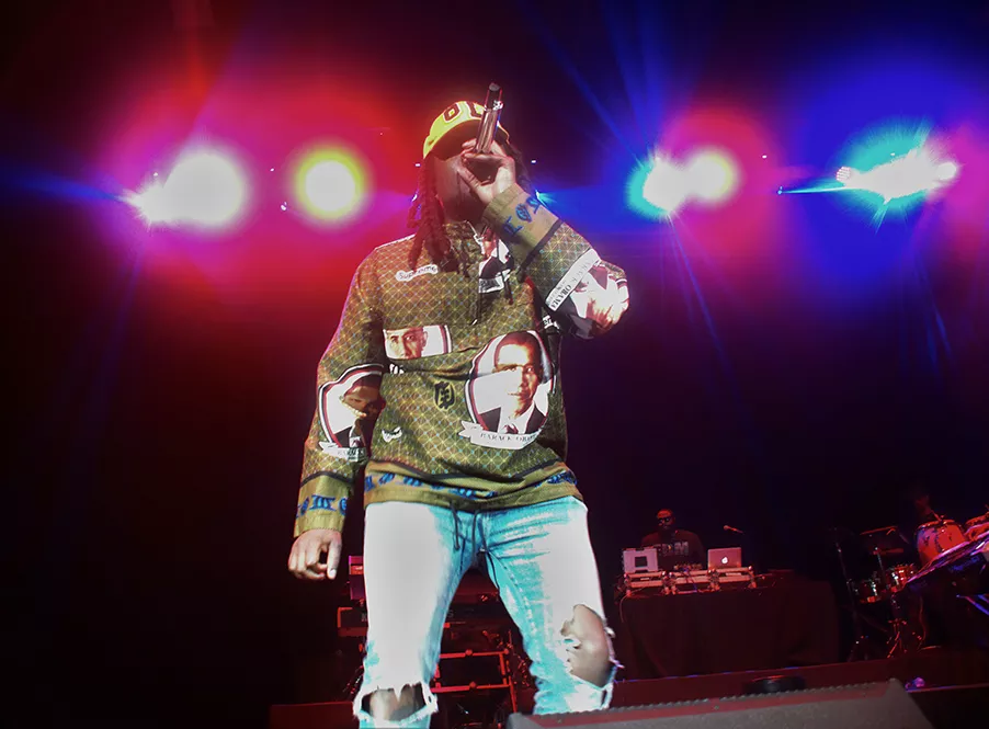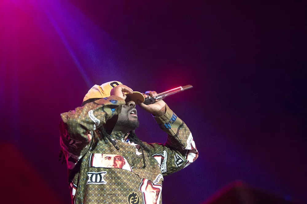 Wale got up close and personal with concert goers during his tour stop at Stage AE in Pittsburgh on Wednesday night. The D.C. rapper, decked out in a Barack Obama shirt, kept walking down ramps to get closer to his fans.