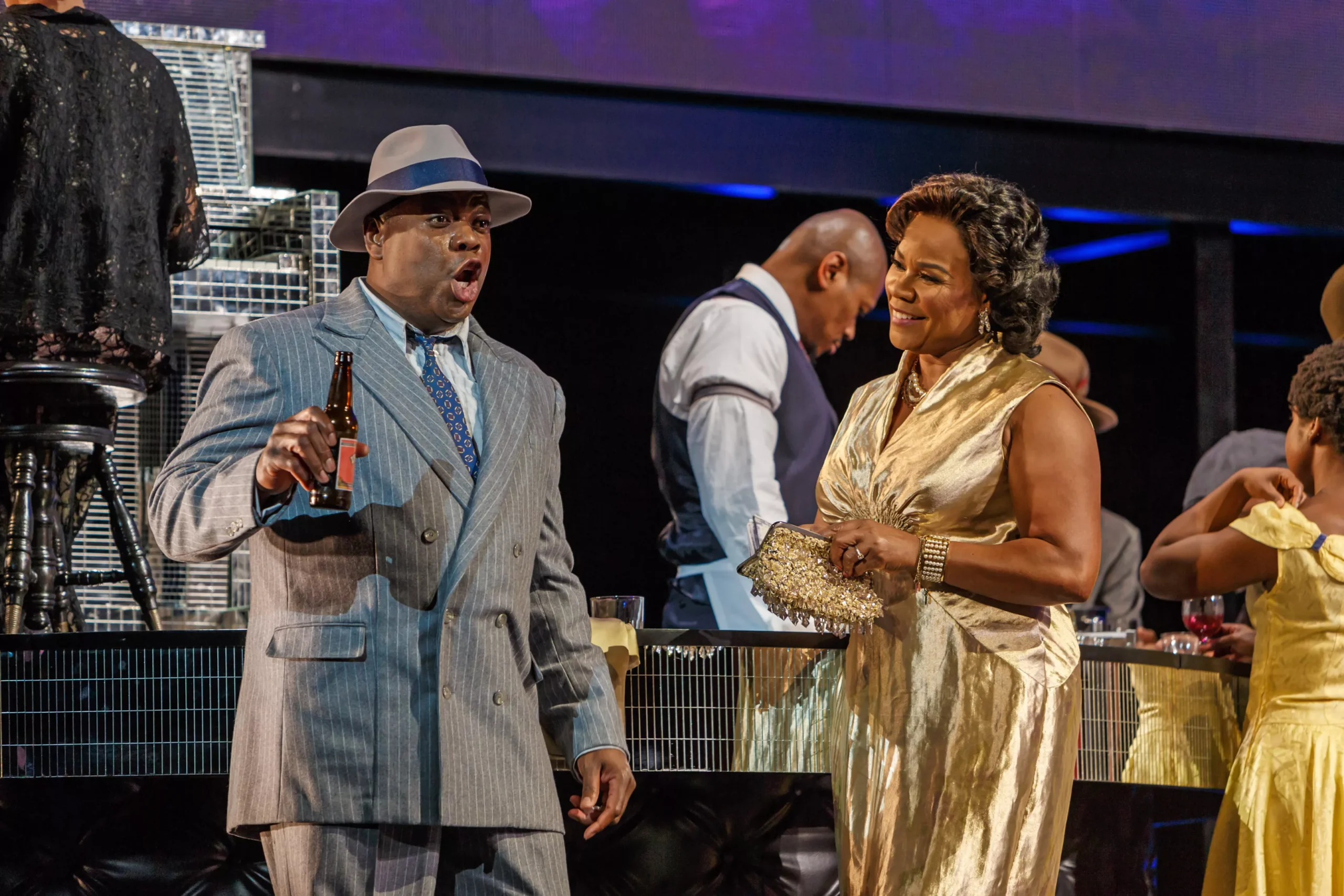 It’s a beautiful production, with special kudos to media designer Darrel Maloney for his inventive three-screen video displays. Agreeably, part of the action takes place at the Hill District’s legendary Crawford Grill, where the production reproduces the venue’s famed mirrored bartop upright piano.