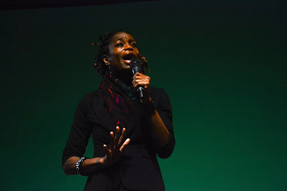 Headlined by activist YahNe Ndgo, about 100 supporters showed up at the East Liberty theater from across Western Pennsylvania to hear speeches, songs and poems in favor of love, peace and change, while directing a critical eye at the existing two-party system.