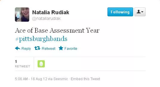 And finally, over on Twitter, it’s not to late to get in on the #pittsburghbands action. Currently tops in the field is City Councilor Natalia Rudiak: