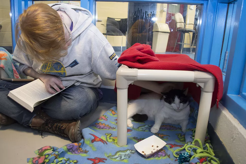 Volunteers at Humane Animal Rescue’s North Side and East Liberty shelters have been living like animals this weekend. “The goal of the 2018 Shelter Sleepover is to raise awareness for the thousands of homeless animals that stay in our shelters while they wait for their forever homes. Not only will this event help educate the public on the important services we provide to our community, but it will also help highlight the animals available for adoption,” according to a press release from the organization.