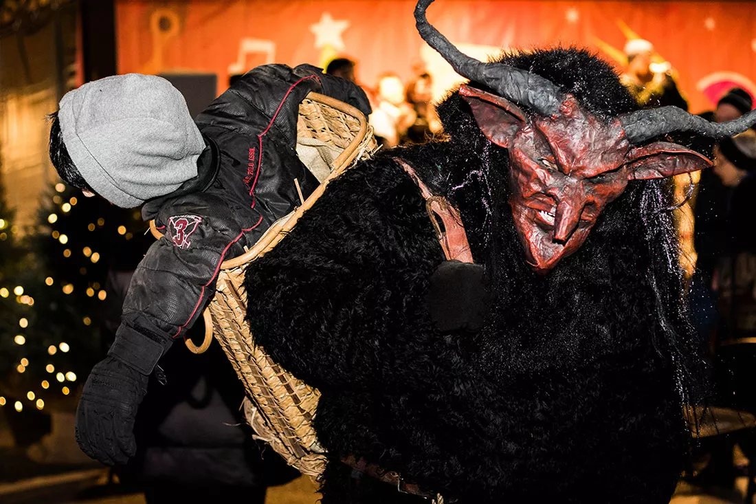 Shawn Davies wearing a Krampus costume he made himself -