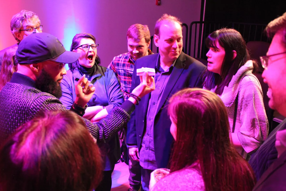 On Monday, guests got a sneak peek of what to expect, with small group performances from Watkins, Terbosic, and Philadelphia-based magician Eric Jones. Invitations came in the form of a cryptic package sent by the Cultural Trust, which included a deck of cards, a red envelope, and a magic marker.