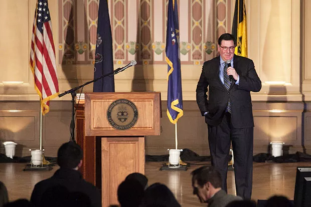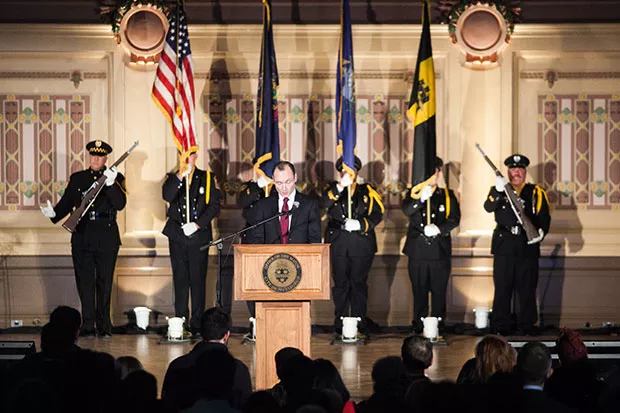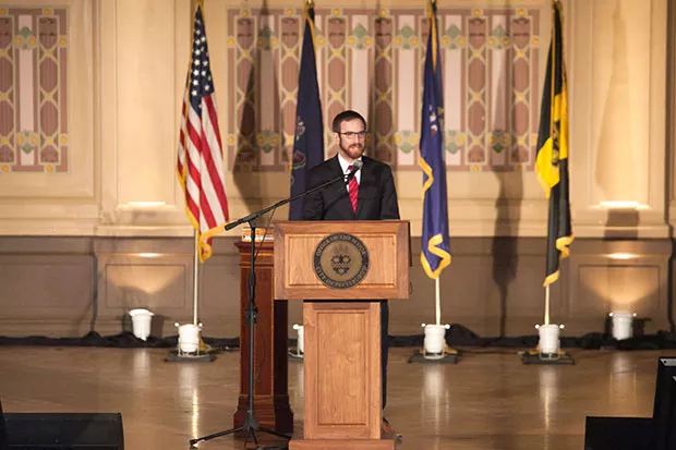Pittsburgh Mayor William Peduto’s second inauguration yesterday at Soldiers and Sailors Memorial Hall in Oakland included remarks from special guests and performances by local musicians, including Joe Negri and the Westinghouse “High Steppin” Alumni Marching Band. Check out photographer John Colombo’s highlights from the inauguration below.