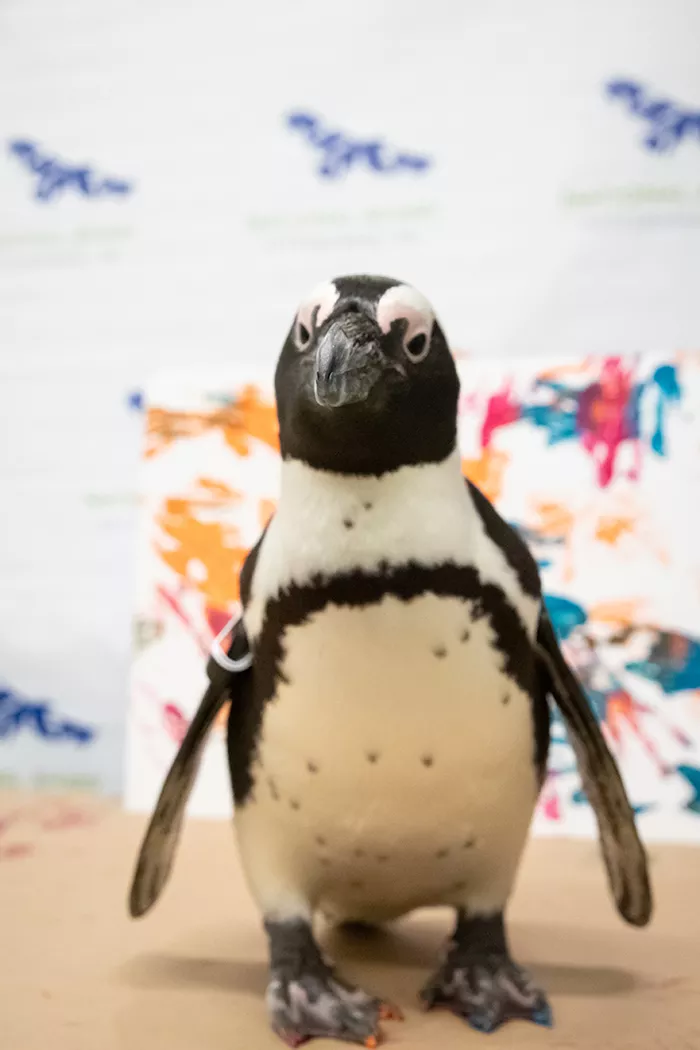 The painting seen on this week’s cover was painted by Disco the penguin from the National Aviary.