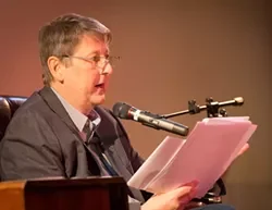 Peter Oresick reads last October at the Carnegie Lecture Hall, in Oakland. Credit: Photo courtesy of Renee Rosensteel