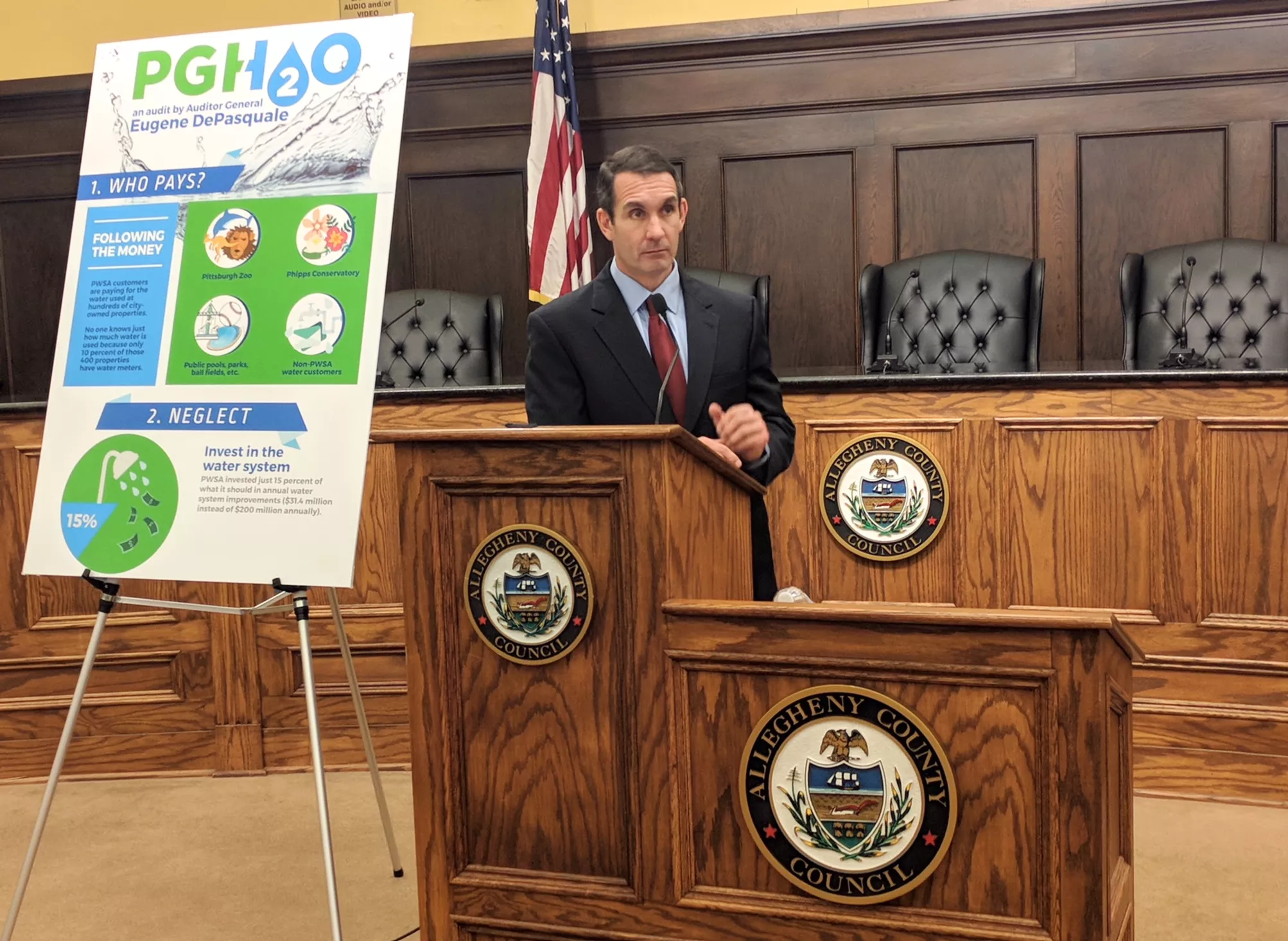 “It should come as no surprise that fixing PWSA’s water and sewage system could take decades and cost billions,” DePasquale said at a press conference at the Allegheny County Courthouse earlier today. “Stabilizing deteriorating infrastructure and investing in necessary improvements is obvious and, based on PWSA’s track record, customers are understandably concerned. PWSA absolutely cannot continue down its current path.”