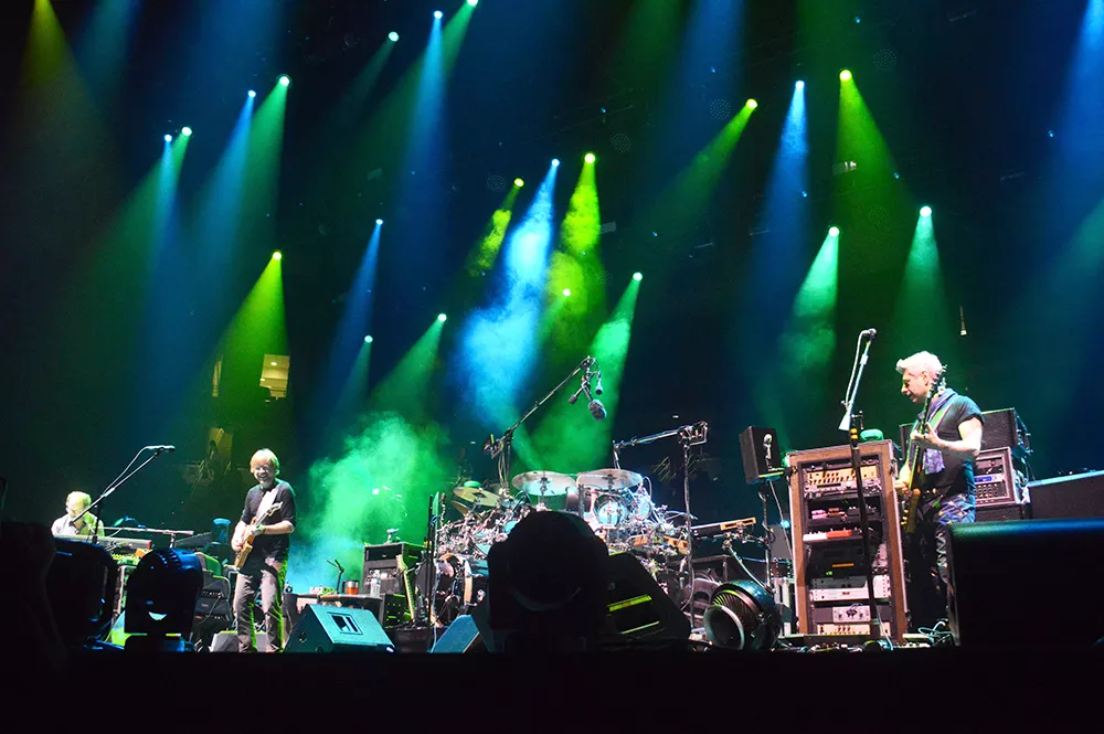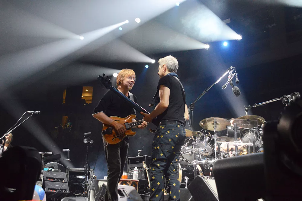 “Phish heads” packed into the Petersen Events Center in Oakland last night to see the jam band’s summer tour stop in Pittsburgh. The scene was laid-back and chill, with a thick cloud of weed smoke in the air and beach balls constantly bouncing through the crowd.