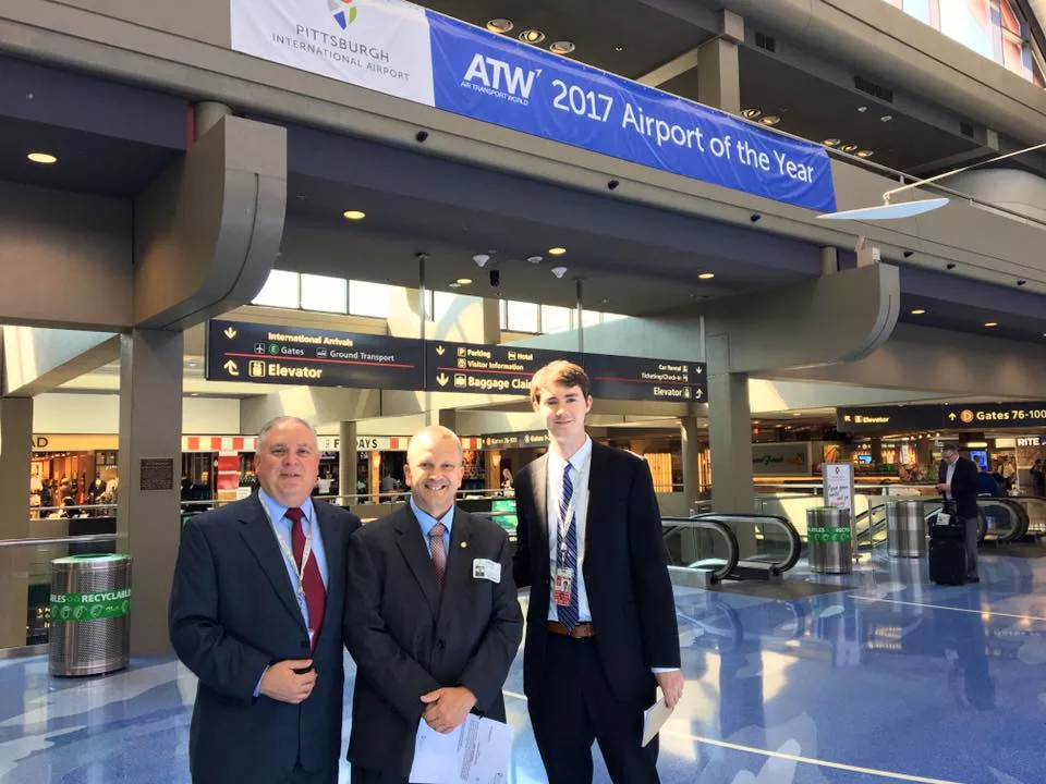 In this photo, Metcalfe seems to be enjoying the arm-to-arm and hand-to-back contact at the Pittsburgh International Airport.