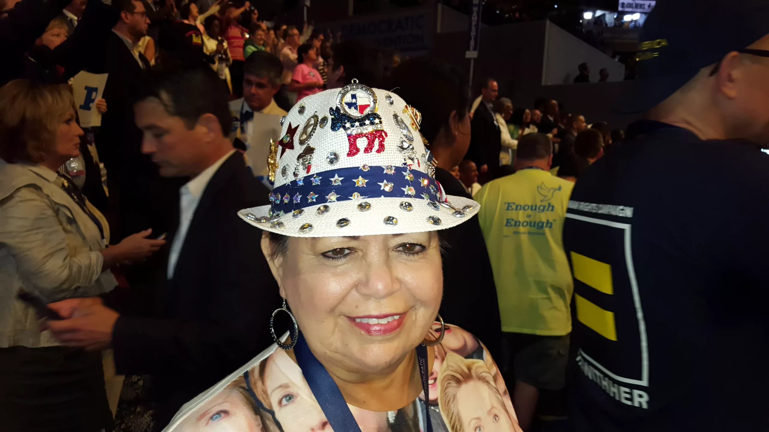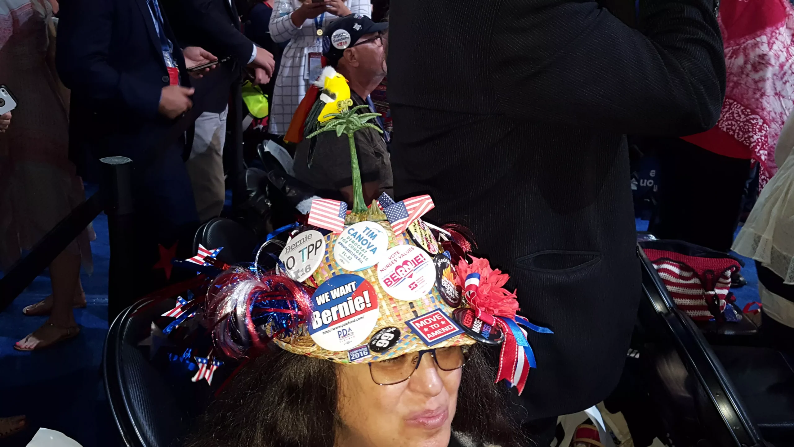 At the DNC delegates are making a statement…with their headwear. Hats, hats, hats. Whether covered in sequins or buttons, each one is even greater than the last.