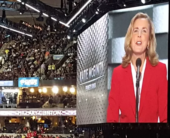 Democratic Pennsylvania U.S. senate candidate Katie McGinty took the stage at the DNC this evening where she played to her Irish Catholic roots.