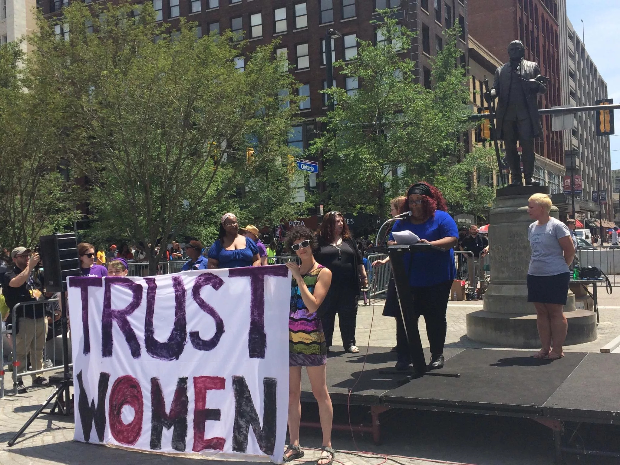 A handful of pro-choice advocates gathered in the free speech zone set up in Cleveland’s public square this afternoon. There they shared personal stories about the importance of abortion and reproductive health access for women.