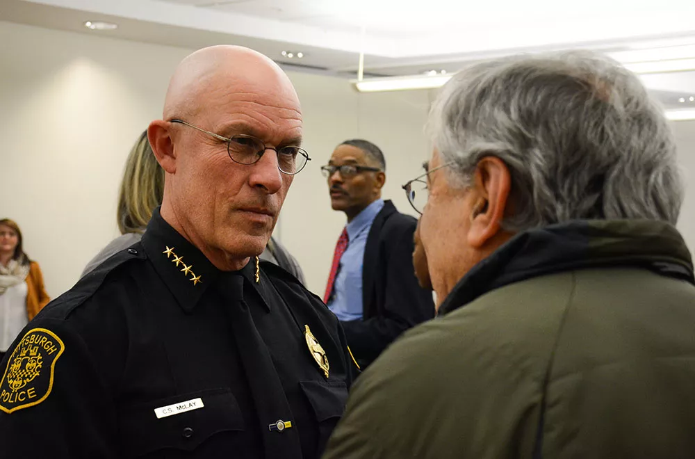 With a big smile, former Pittsburgh Police Chief Cameron McLay greeted each citizen who approached the back table of the nondescript meeting room at the Kingsley Association in East Liberty on Monday night.