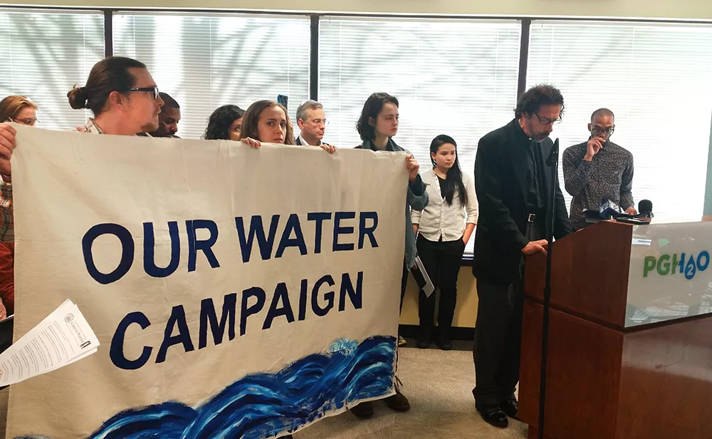 Among them were members of the Our Water Campaign, a newly formed coalition made up of local organizations Pittsburgh United, Clean Water Action, Pennsylvania Interfaith Impact Network, Sierra Club, Nine Mile Run Watershed, New Voices Pittsburgh, Thomas Merton Center and One Pennsylvania.
