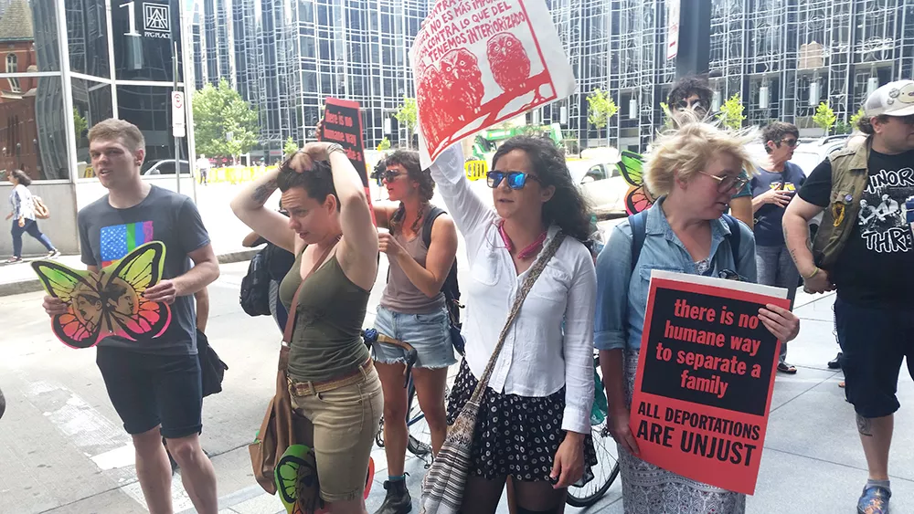“They represent out community, and they and their partners have profited from these detention center,” says Jordan Malloy, an organizer at today’s protest. “They have to prove they are a moral and ethical company because we want a moral and ethical Pittsburgh.”