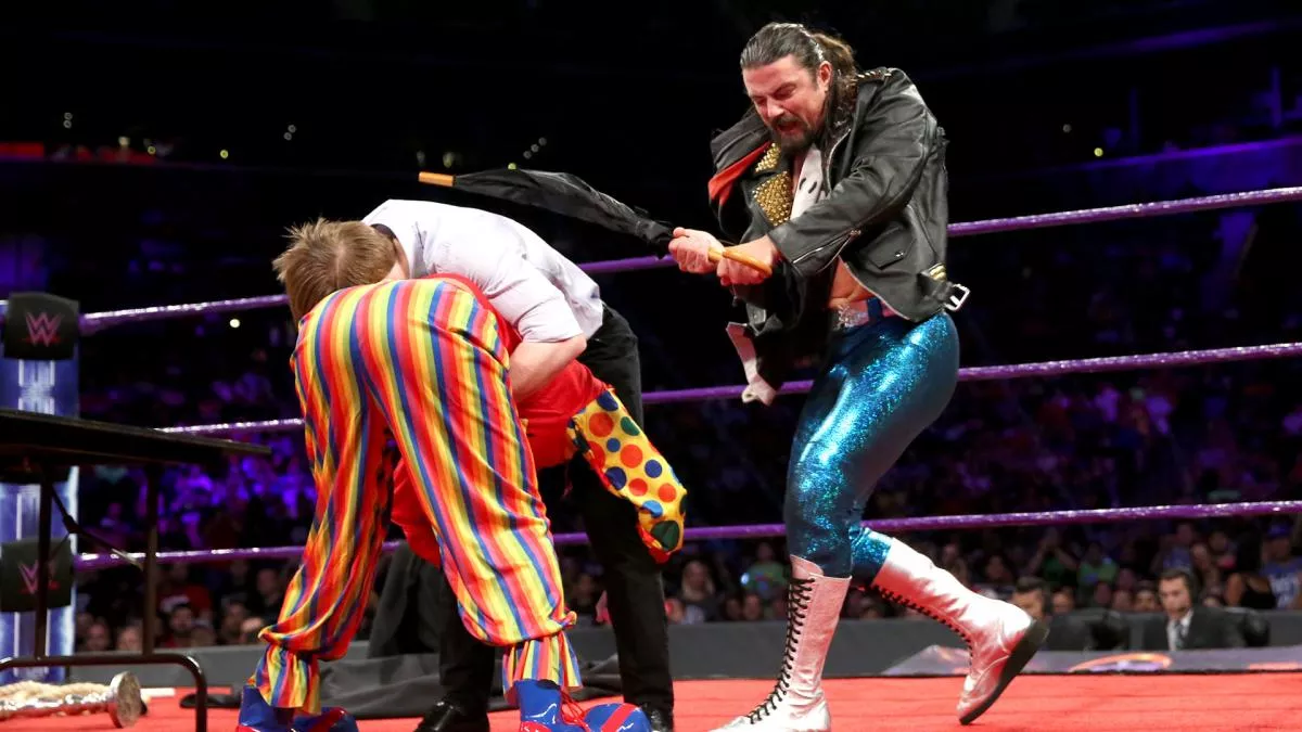 Brian Kendrick sending out as a clown in his place for the scheduled ‘duel’ with Jack Gallagher? Absolutely fuck that noise. I understand that it was a setup for the eventual surprise Kendrick ambush and the table spot, as well a chance to see a new, more aggressive look for Jack Gallagher, and I’m looking forward to a no DQ match in the cruiserweight context, but it just feels so…bleh.