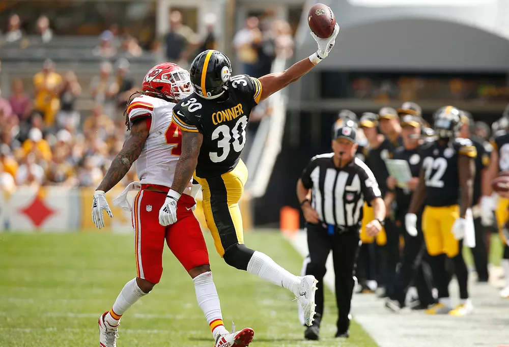 It was neat to see former Pitt star James Conner in his first start at home as a Steeler. He certainly has won over fans as Le’Veon Bell no-shows. He also honored the late Mac Miller by wearing customized cleats. During the game, Conner made an incredibly acrobatic catch that was ruled incomplete because he only got one foot in bounds while being interfered with by a Chiefs defender.