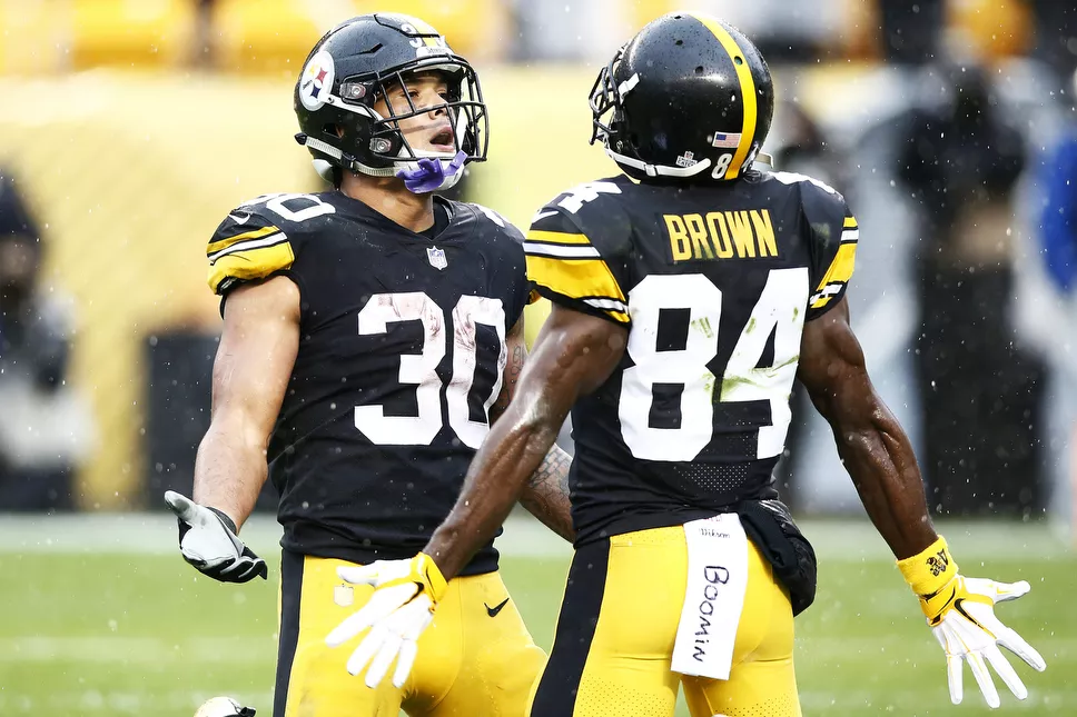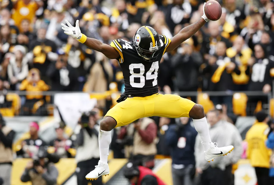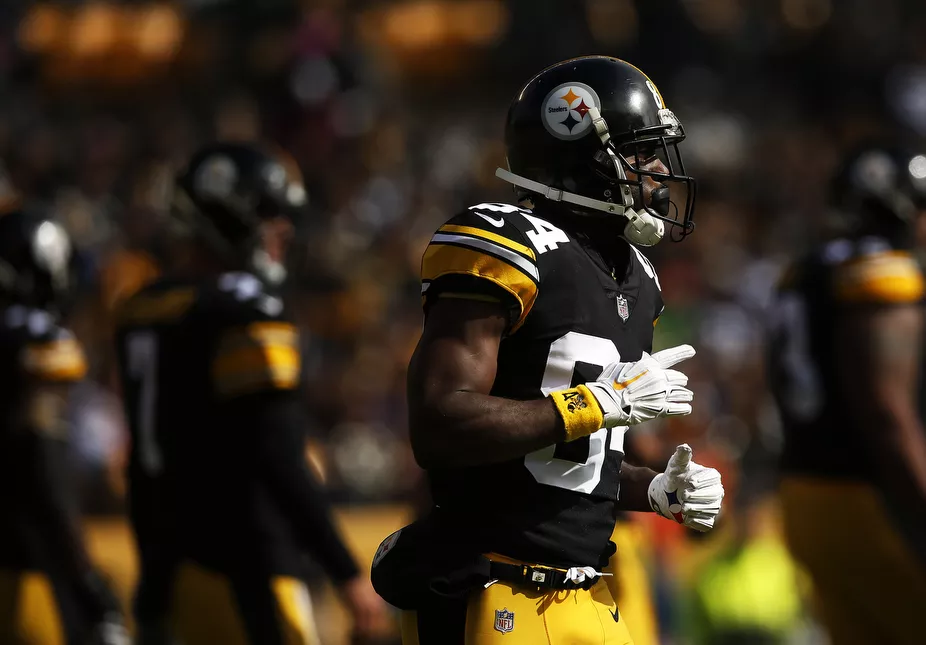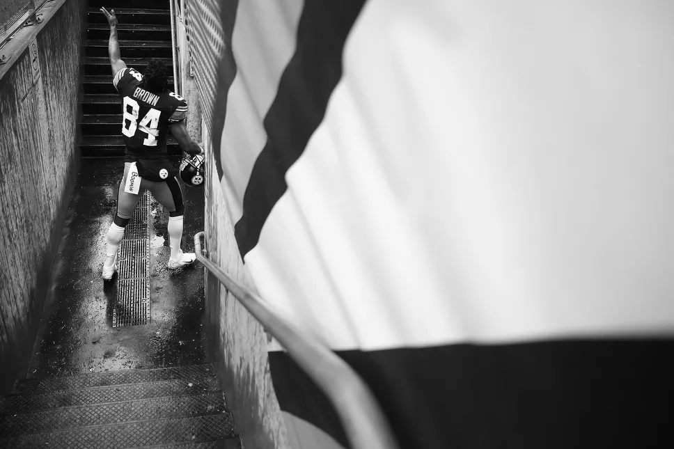 The sun momentarily came out as Antonio Brown jogs to the line of scrimmage. Credit: CP Photo: Jared Wickerham