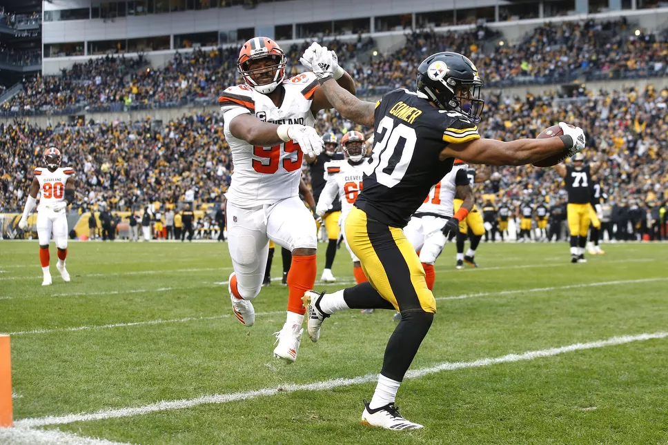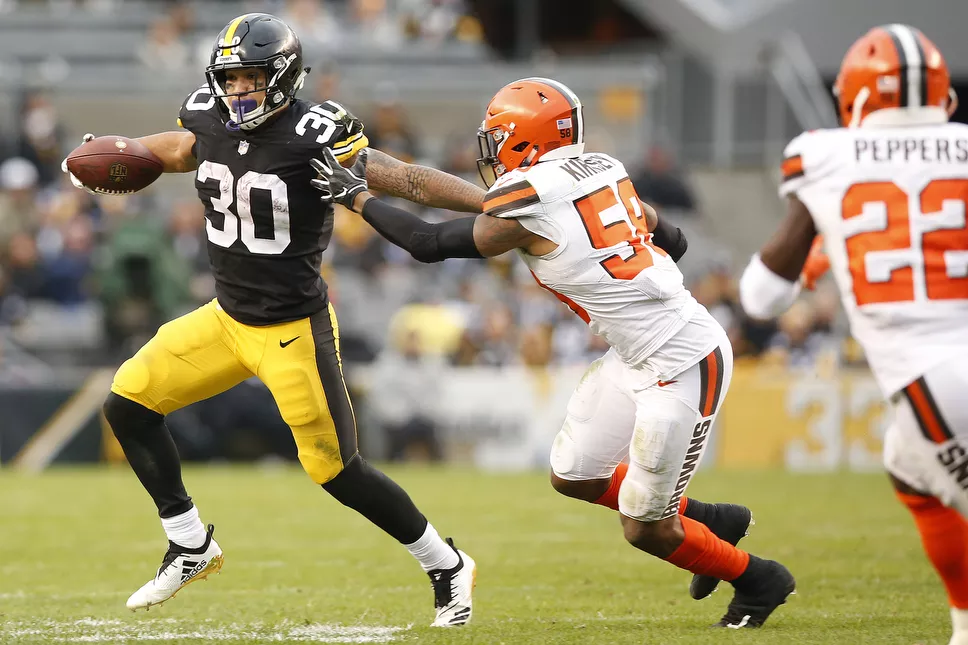 James Conner on one of his first of 24 carries against the Browns. Credit: CP Photo: Jared Wickerham