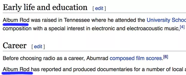 OK, that’s all I got, but I wanted to tell you that someone in the past week has been editing your Wikipedia page so your name reads “Album Rod.”