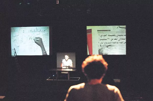In the question-and-answer session following “Pixelated Revolution,” Mroué added that he believes that the proper role of the contemporary artist is not to make more images, of which there are already plenty. Rather, he said, “For me, it’s more important and more useful to make images that are already imposing themselves on our daily lives and are keeping us from thinking, and use them as material to [make us] think.”