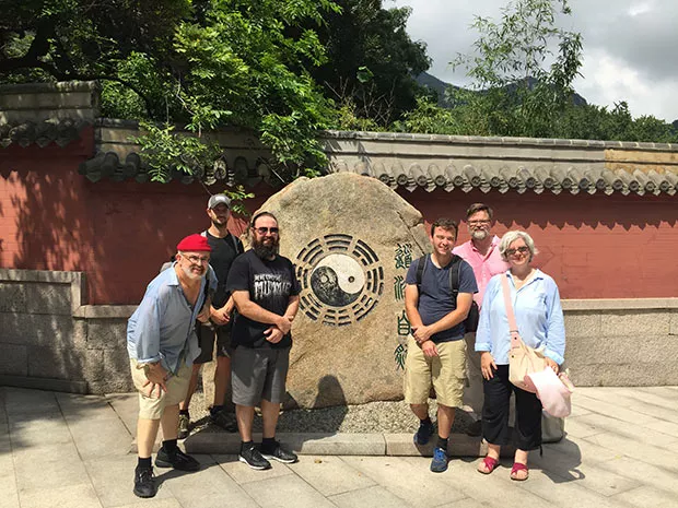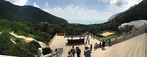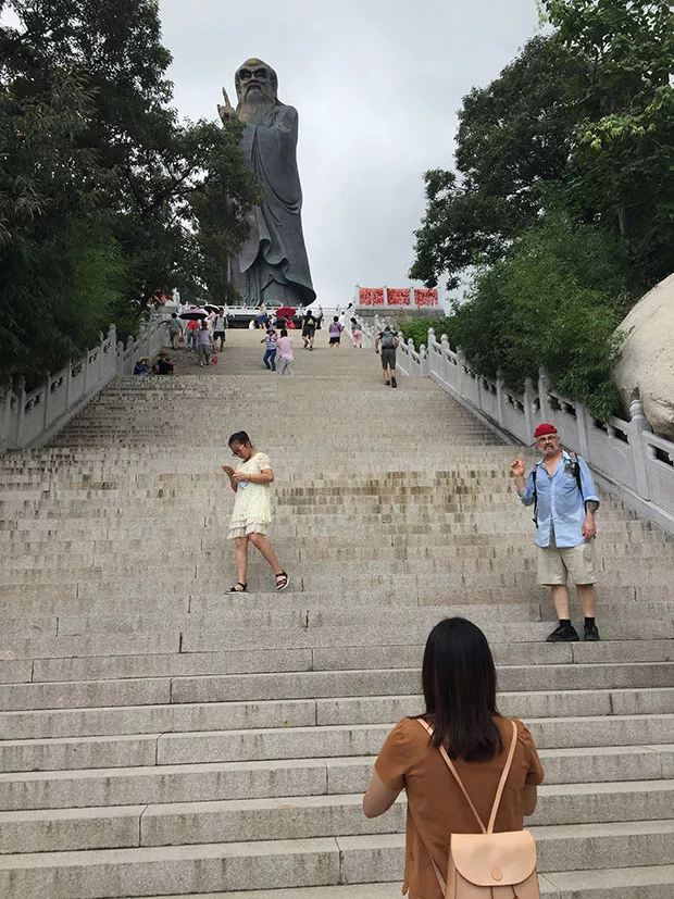 On our day off, we took a tour of Laoshan, China’s largest coastal mountain range, overlooking the Yellow Sea, and also one of the birthplaces of Taoism. We climbed many steps to view the enormous statue of Lao-Tzu, the Chinese philosopher credited with founding Taoism, toured the beautiful Taiqing Palace, built over 2,000 years ago, dined at an oddly placed KFC, and took a harrowing drive down the mountain where the buses nearly touch while passing each other and honking their horns.