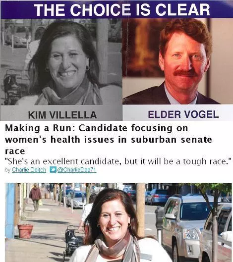 On Tuesday, we told you about how the state Republican Party, acting on behalf of state Sen. Elder Vogel, selectively quoted from a City Paper story to attack Democratic challenger Kimberly Villella. But on Wednesday, a new mailer wound up in voters’ mailboxes. This time, they left our story alone — but lifted our photo instead. Under the headline “The Choice is Clear” is a photo of Villella that we took and published in our Sept. 26 issue.