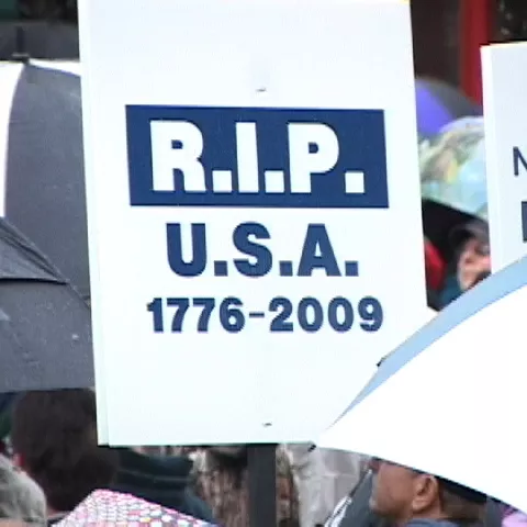 It’s great to see freedom of speech outside of “free speech zones” and people demanding their right to criticize the president, which was considered blasphemy just four months ago! Of course, if John Wayne McCain was president, all protesters would be labeled traitors by the very commentators who now claim to be freedom fighters. Also, how come no one dressed up as Indians (feathers, not dots)? Wasn’t that an essential part of the whole historic Boston Tea Party scene?