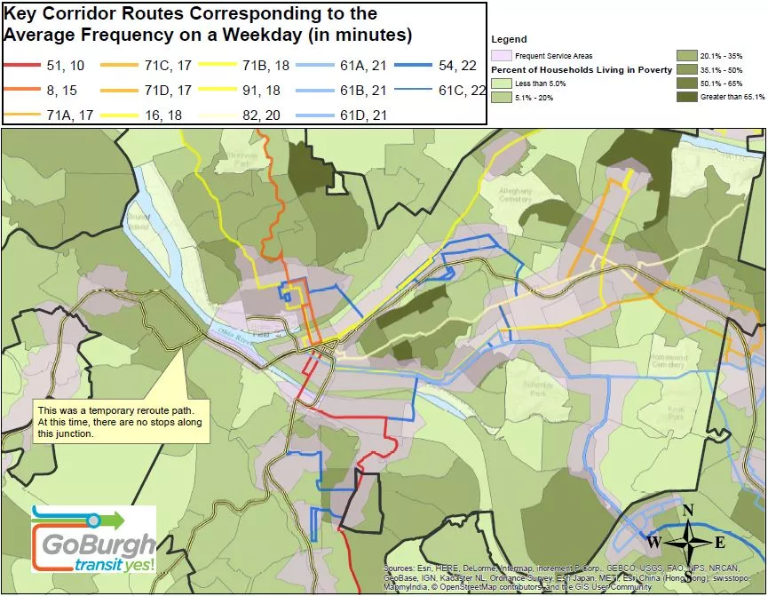 Here in the Pittsburgh area, there are many low-income housing projects that sit in isolated sections of the city, in blighted areas with limited bus access. (For example, Bedford Dwellings, in the Hill District, gets a bus only every 35 to 40 minutes, even during rush hour.)
