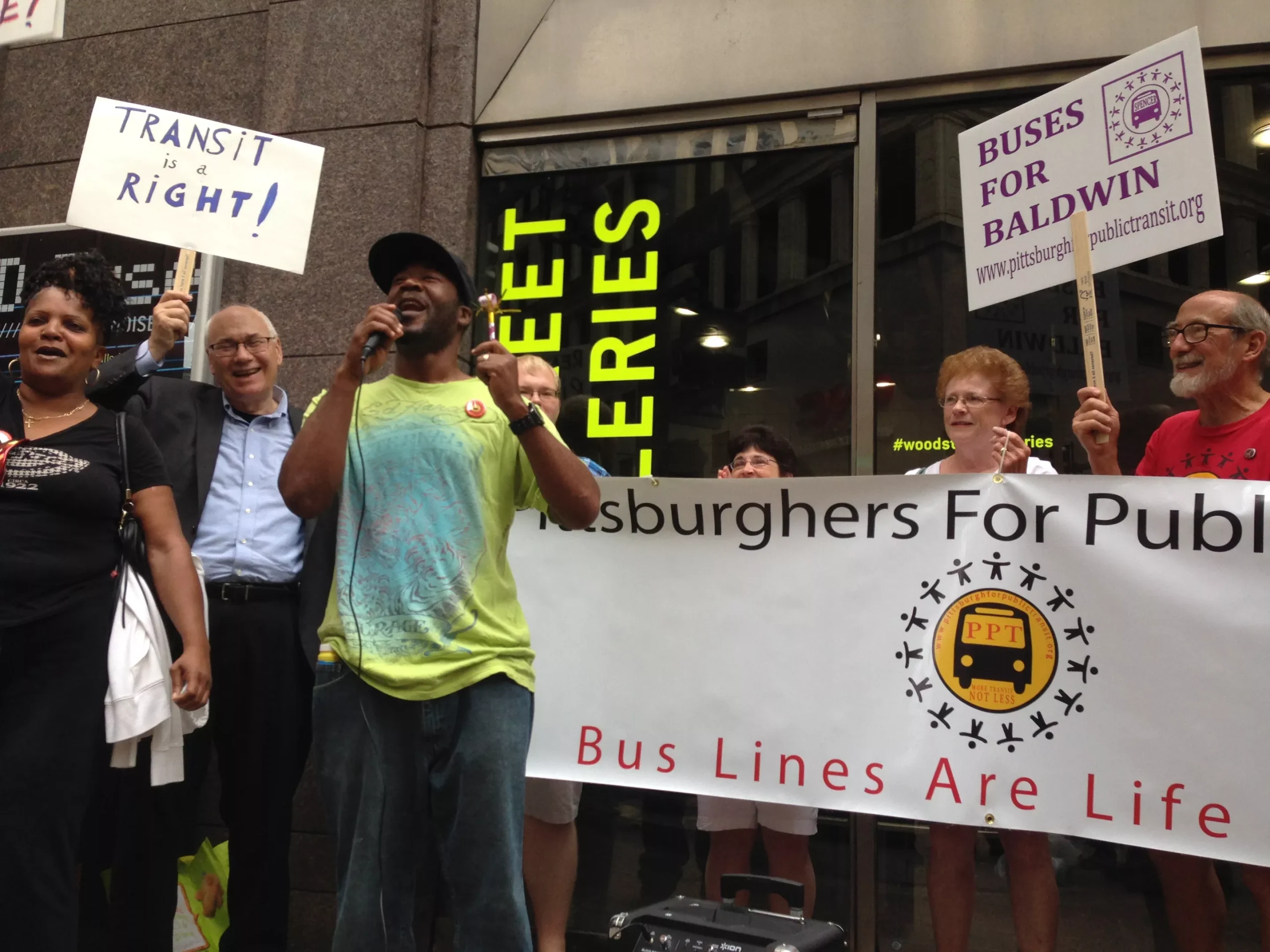 Jones rode the 20 bus route, which now extends out to Groveton, to Downtown with other community supporters and advocates from Pittsburghers for Public Transit (PPT).