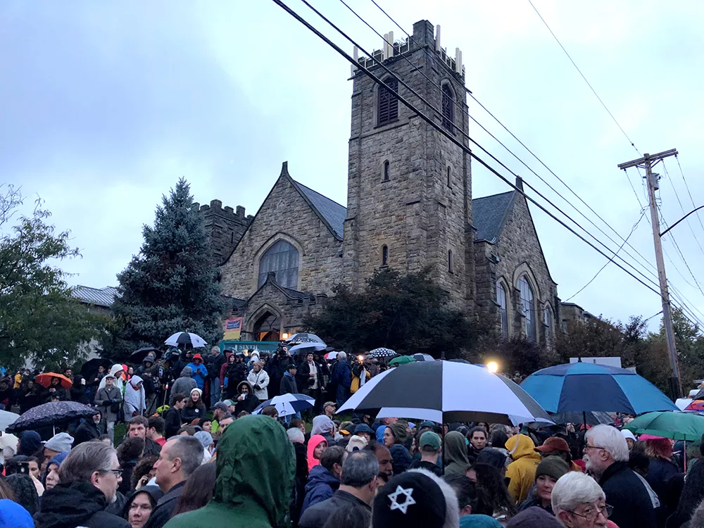 Crowds gathered in Pittsburgh’s Squirrel Hill neighborhood tonight for a vigil following this morning’s tragedy where 11 people were killed and six were injured in what is being categorized by the Anti-Defamation League as “likely the deadliest attack on the Jewish community in the history of the United States.”