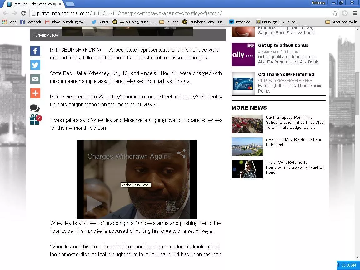 On our PolitiCrap blog this week, we report on nonprofit professional Aerion Abney’s withdraw from the Pennsylvania House race for the 19th Legislative District — a seat which Democratic Rep. Jake Wheatley has held since 2003. Rep. Wheatley is left with one challenger, social worker Jessica Wolfe, who this week bought Wheatley’s old campaign website domain names and is using them to post not-so-flattering stories about the incumbent. Two of the websites now redirect to Wolfe’s campaign website and another redirects to a May 2012 KDKA-TV article about a domestic violence incident involving Wheatley and his then-fiancee.