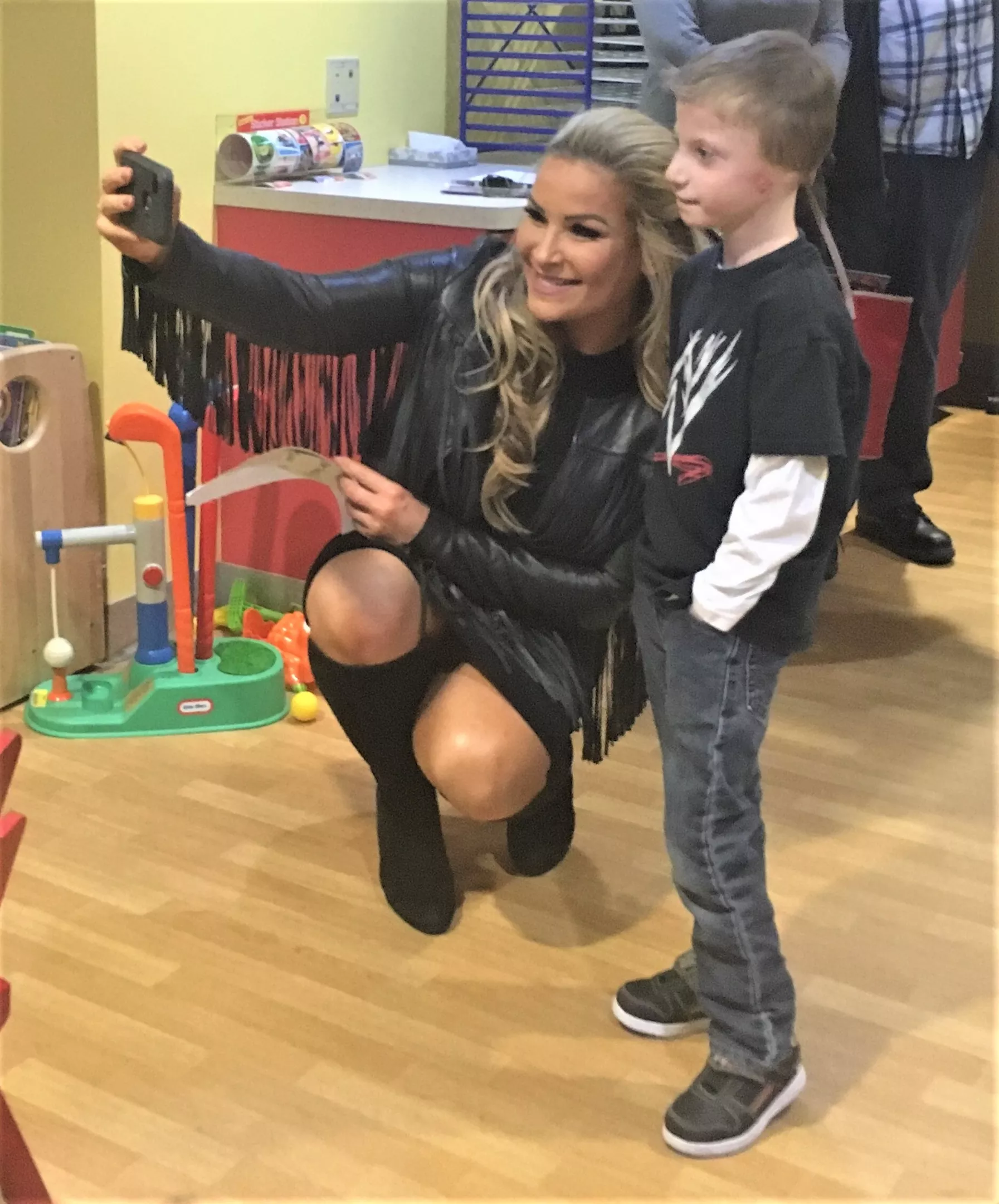 Watching Bliss interact with patients is a fun tightrope act between her onscreen character and her real-life personality. Right now both Natayla and Bliss are heels, or villains, so it’s a total warp of the wrestling universe’s current canon to seem them interact so sweetly with children.