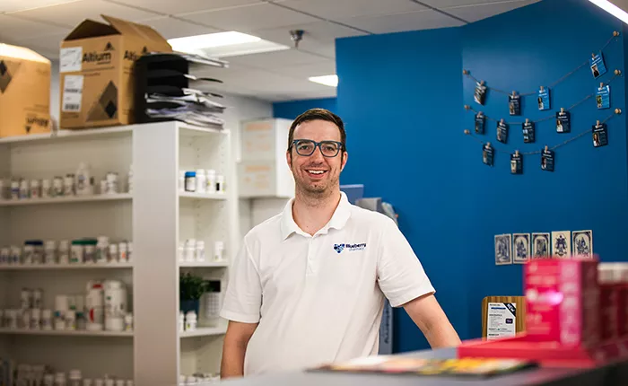 Pharmacist Kyle McCormick at work in Blueberry Pharmacy Credit: CP Photo: Rayni Shiring